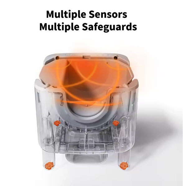 Absolutely. FreshPurr 2.0 includes multiple infrared and weight sensors that instantly pause the system if your cat approaches. The box never operates while a cat is inside.